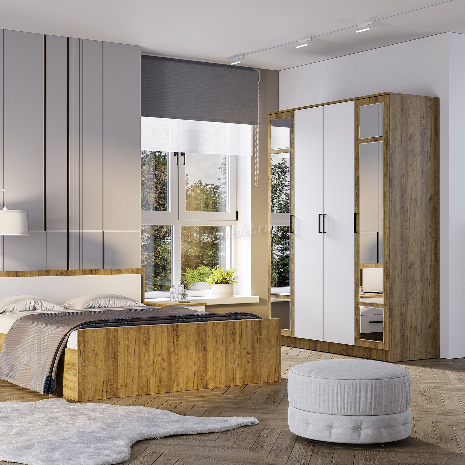 • Шкаф распашной Ирис 4-х створчатый (Дуб крафт золото/Белый)